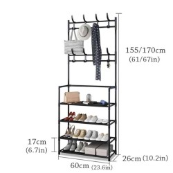 🔰4 niveles 🔰Armable Organizador multifuncional 3 en 1 con perchero y zapatera Diseño 3 en 1: una gran combinación multiusos de percha, zapatero y barra para colgar, mantiene tu entrada y clóset ordenado. Estable: hecho de metal de hierro Todos los ganchos con bordes redondeados ayudan a mantener tus pertenencias firmemente y también evita rayar la ropa.
